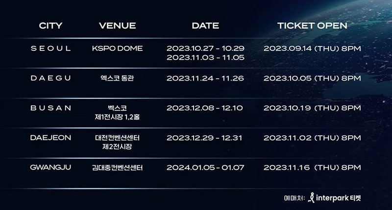 | 도 시 | 장 소 | 일 정 | 티켓팅 오픈 |