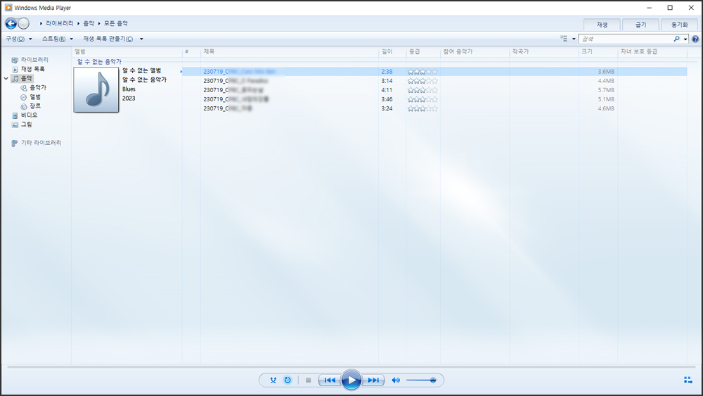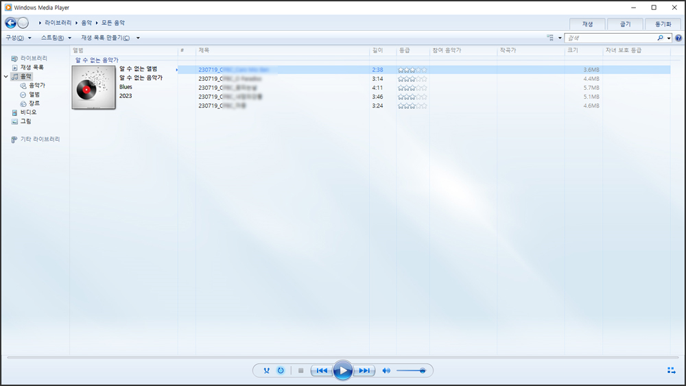 윈도우미디어 플레이어를 이용하여 mp3 파일에 이미지 넣기