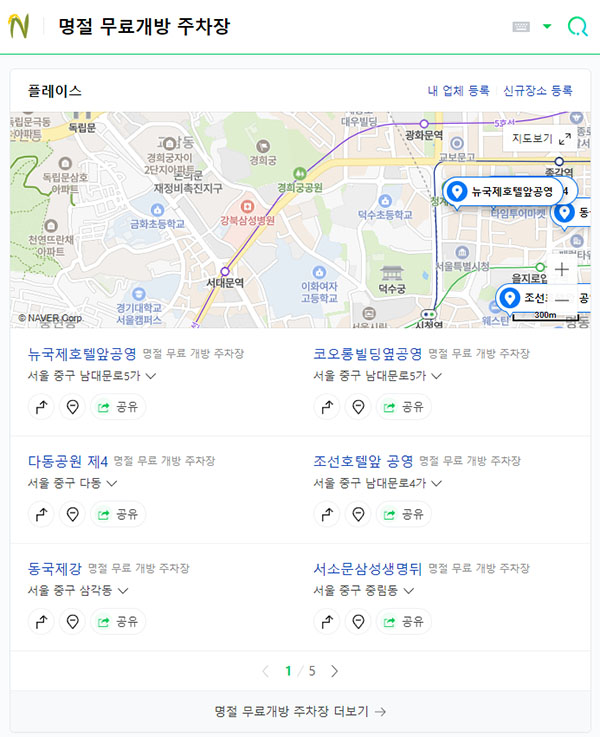 "명절 무료개방 주차장" 검색하기