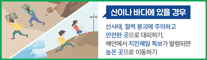 해안에서 지진해일 특보가 발령되면 높은 곳으로 이동합니다