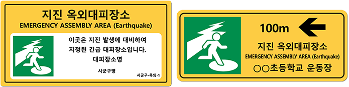다음과 같은 대피장소 표지판을 미리 확인하고 평소에 눈여겨봐 두는 것이 좋습니다